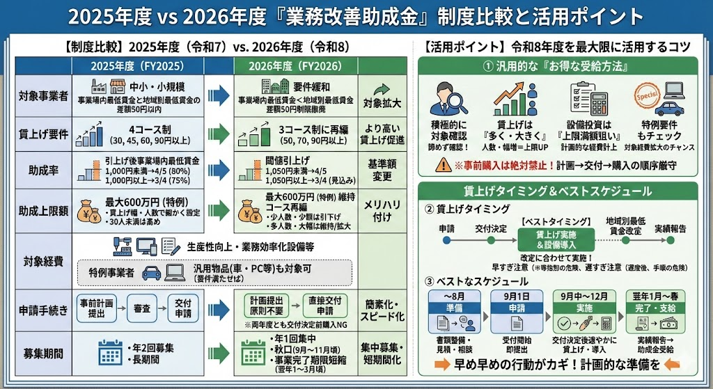 2025年度と2026年度「業務改善助成金」の制度比較と活用ポイント