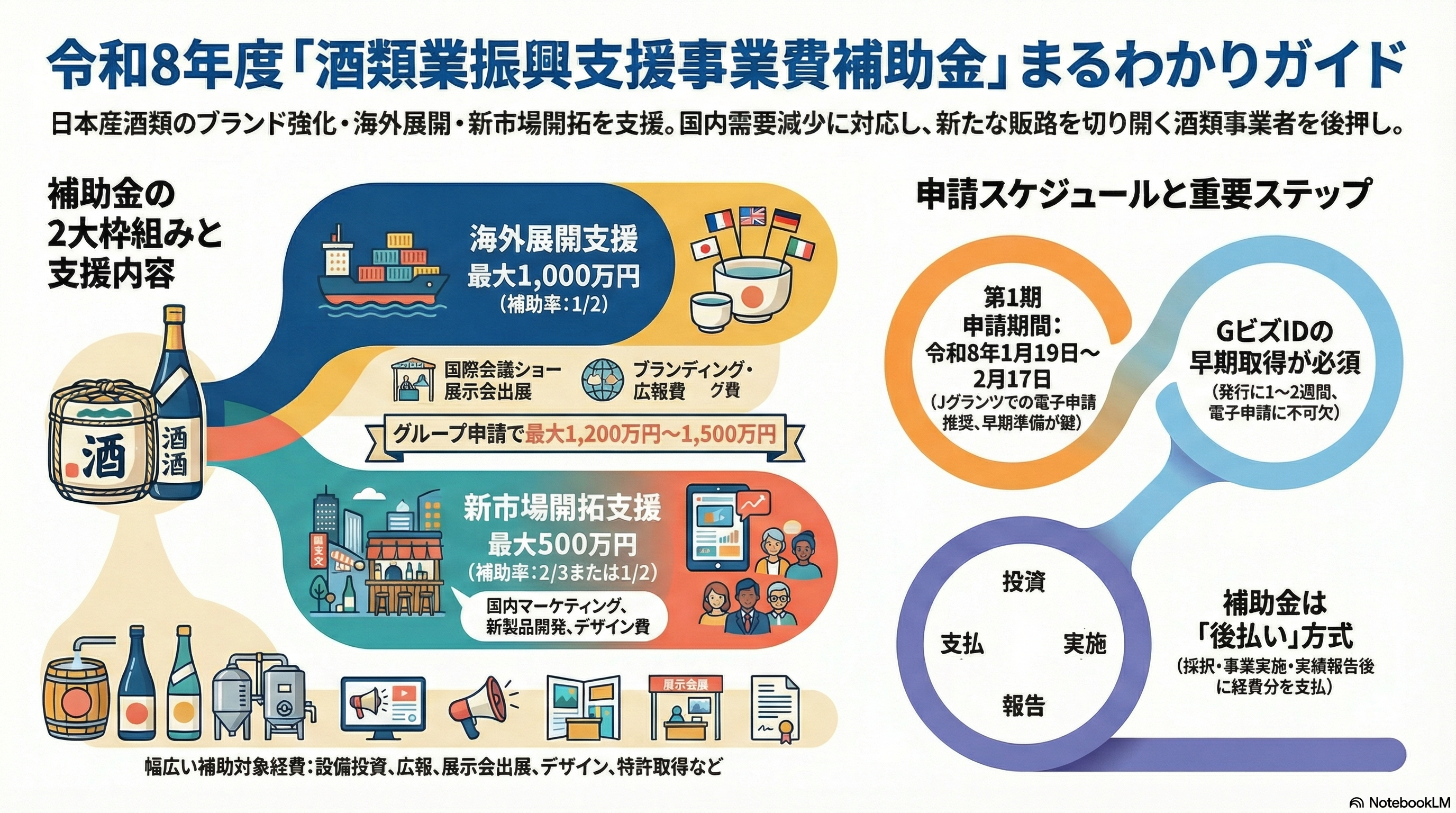 ここではまず、**「酒類業振興支援事業費補助金」第1期(令和8年度)**の要点を整理します。