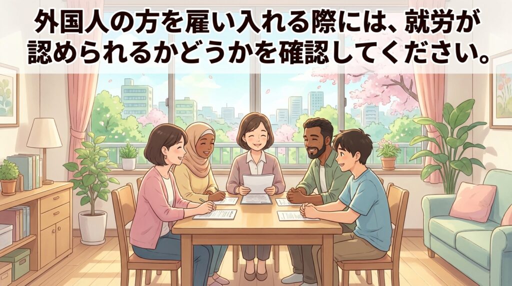 外国人の方を雇い入れる際には、就労が認められるかどうかを確認してください。
